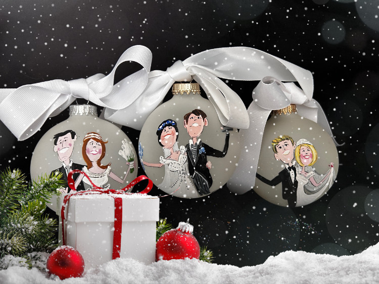 THE COUPLE IN THEIR WEDDING ATTIRE IS THE MOST UNIQUE FIRST CHRISTMAS ORNAMENT